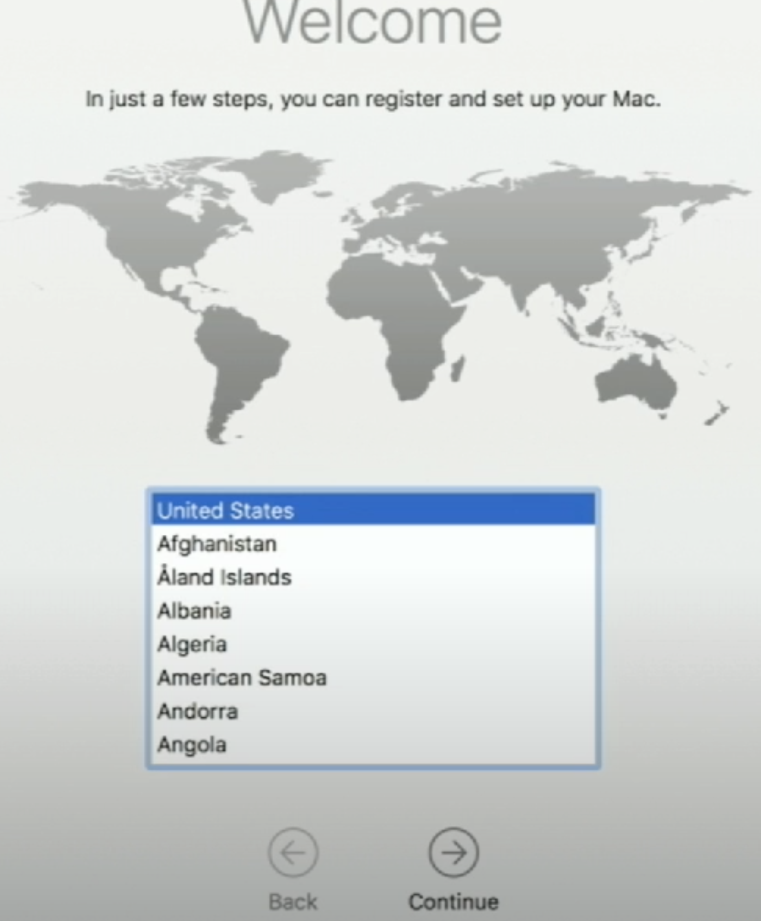Hierdie deel van die proses vind plaas wanneer ’n gebruiker ’n Mac vir die eerste keer opstart (of na ’n volledige skoonmaak)