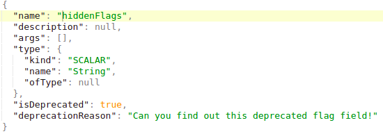 Wie auch immer, das wussten wir bereits — in der Basic Enumeration Sektion wurde eine Query vorgeschlagen, die uns alle benötigten Informationen zeigte: query={__schema{types{name,fields{name, args{name,description,type{name, kind, ofType{name, kind}}}}}}}