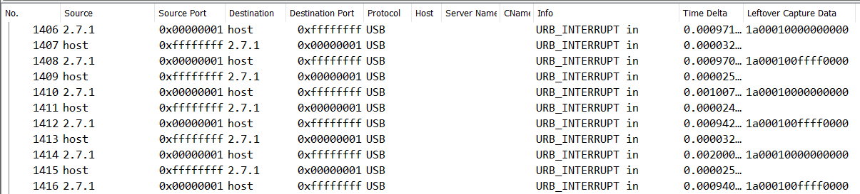 PCAP से HID डेटा निकालना