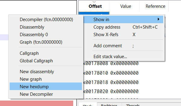 आप उदाहरण के लिए एक हेक्स डंप के अंदर स्टैक देख सकते हैं: