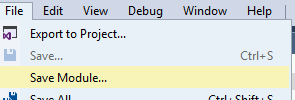 फिर नए फ़ाइल को File >> Save module… के माध्यम से सहेजें: