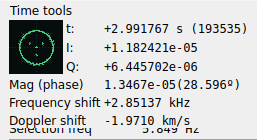 इसके अलावा, एक अलग आवृत्ति को IQ ग्राफ द्वारा सर्कल के चारों ओर गति की तेजी द्वारा “प्रतिनिधित्व” किया जाता है (इसलिए SysDigger में सिग्नल का चयन करते समय IQ ग्राफ भरा जाता है, यदि आप बनाए गए सर्कल में गति की तेजी या दिशा में परिवर्तन पाते हैं, तो इसका मतलब हो सकता है कि यह FM है):