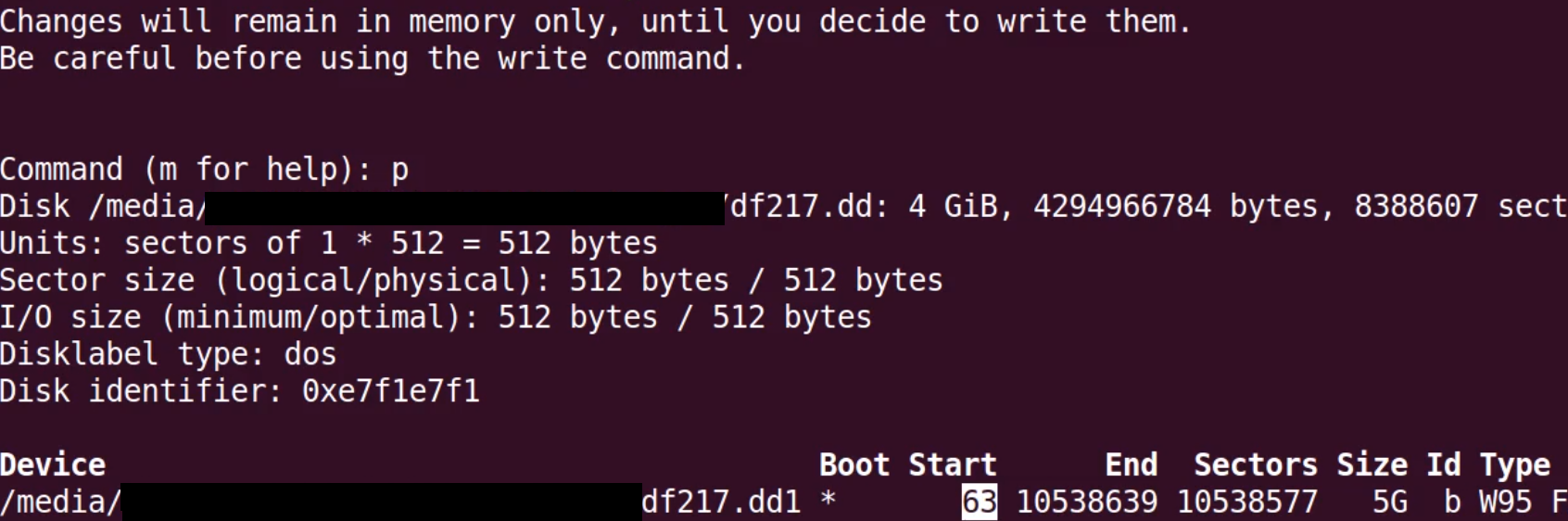 | 4 (0x04) | 1 (0x01) | Partition type code (0x83 = Linux) |