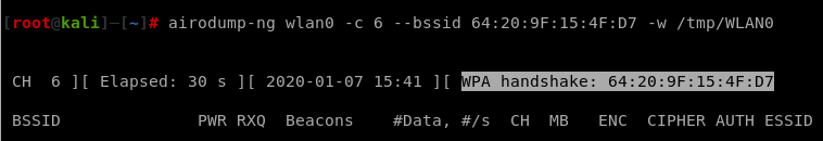 airodump-ng wlan0mon #Scan (default 2.4Ghz)