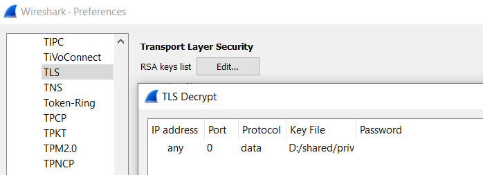 Now or later (when you have already captured some authentication intents) you can add the private RSA key to wireshark in: Edit --> Preferences --> Protocols --> TLS --> (RSA keys list) Edit...