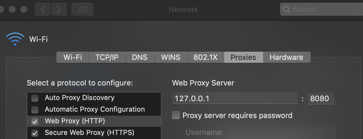 - Na aba Proxies, marque Web Proxy (HTTP) e Secure Web Proxy (HTTPS)