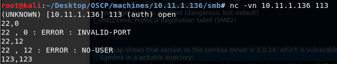 Note: apt install ident-user-enum ident-user-enum {IP} 22 23 139 445 (try all open ports)