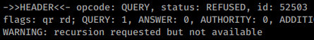 A maneira de verificar se um DNS suporta recursão é consultar um nome de domínio e verificar se a bandeira “ra” (recursão disponível) está na resposta: