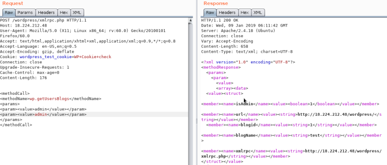 wp.getUserBlogs, wp.getCategories ou metaWeblog.getUsersBlogs são alguns dos métodos que podem ser usados para brute-force credentials. Se você encontrar qualquer um deles, pode enviar algo como: