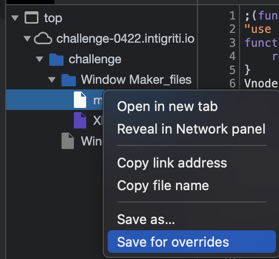 Então, em “Dev Tools” –> “Sources” selecione o arquivo que você deseja substituir e com clique direito selecione “Save for overrides”.