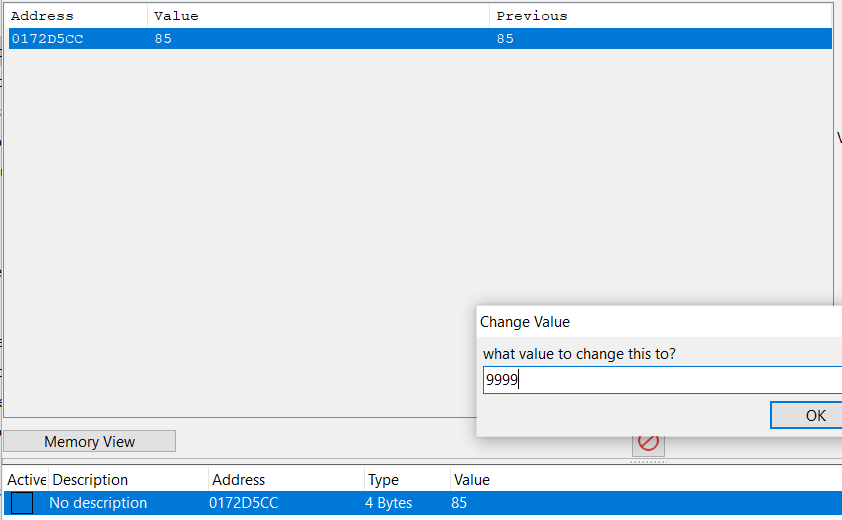 Então, vamos supor que há um valor importante (como a vida do seu usuário) que você deseja melhorar, e você está procurando por esse valor na memória.
