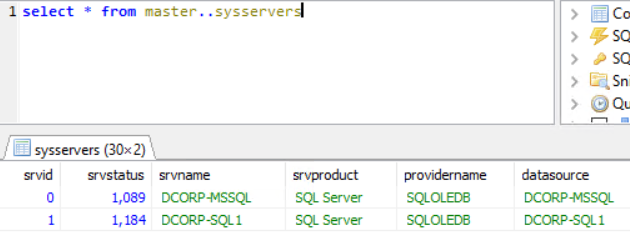 select * from openquery("dcorp-sql1", 'select * from master..sysservers')