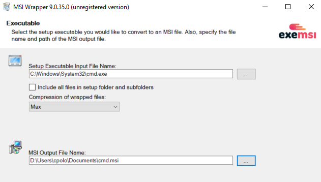 Baixe a versão gratuita do aplicativo em https://www.exemsi.com/documentation/getting-started/, execute-o e envolva o binário “malicioso” nele.
