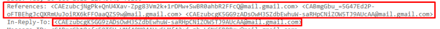 Ayrıca, References ve In-Reply-To başlıkları içinde mesajların ID’sini bulabilirsiniz: