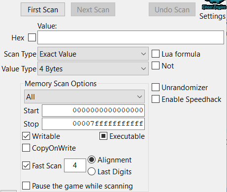 Cheat Engine çalışan bir oyunun belleğinde önemli değerlerin nerede saklandığını bulmak ve bunları değiştirmek için yararlı bir programdır.