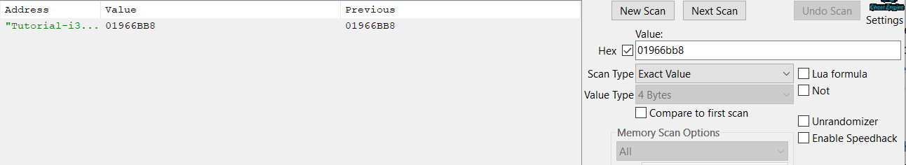 Cheat Engine, 100’den yeni değere geçen değerleri arayacaktır. Tebrikler, aradığınız değerin adresini buldunuz, şimdi bunu değiştirebilirsiniz.