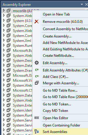 Assembly Explorer üzerindeki herhangi bir modüle sağ tıklayın ve Sort Assemblies seçeneğine tıklayın: