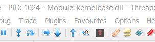Yürütme herhangi bir nedenle win64dbg’de durdurulduğunda, nerede olduğunuzu görebilirsiniz, win64dbg penceresinin üst kısmında: